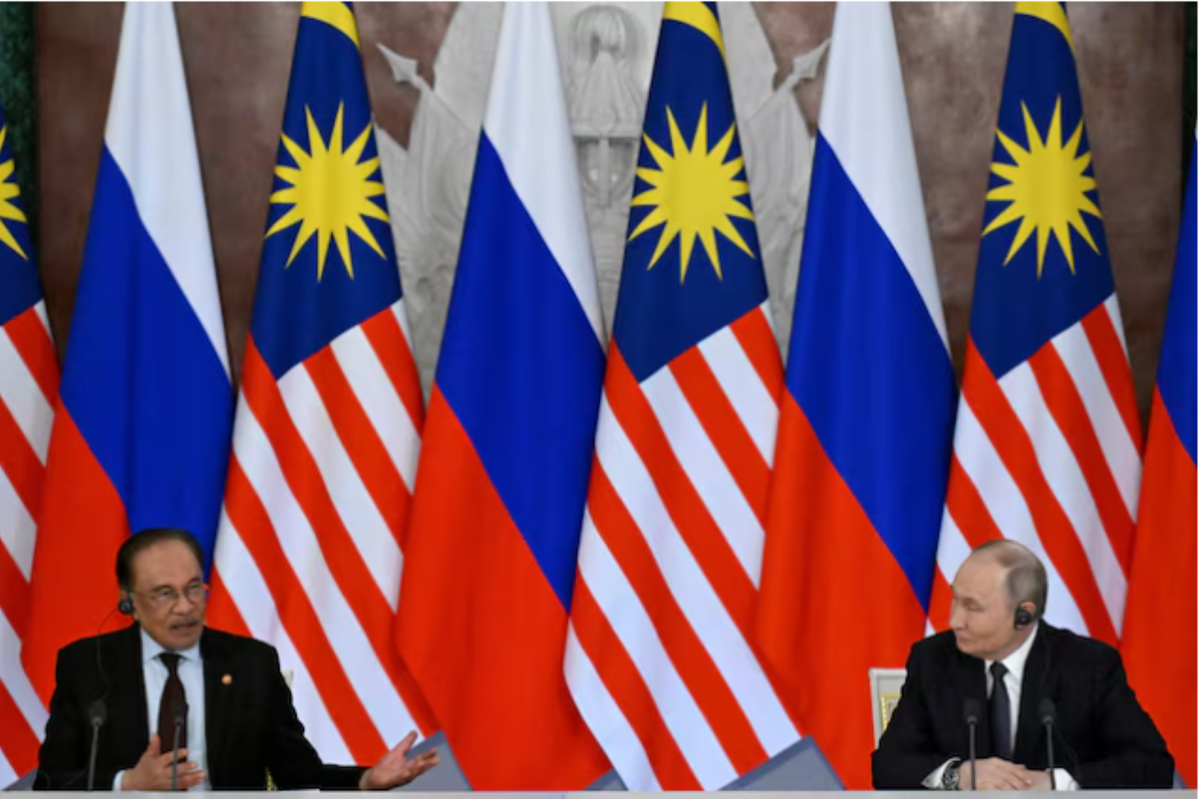 Tổng thống Vladimir Putin và Thủ tướng Malaysia Anwar Ibrahim đưa ra tuyên bố chung với báo chí sau cuộc hội đàm tại điện Kremlin ở Moskva, Nga. (Ảnh: Reuters)