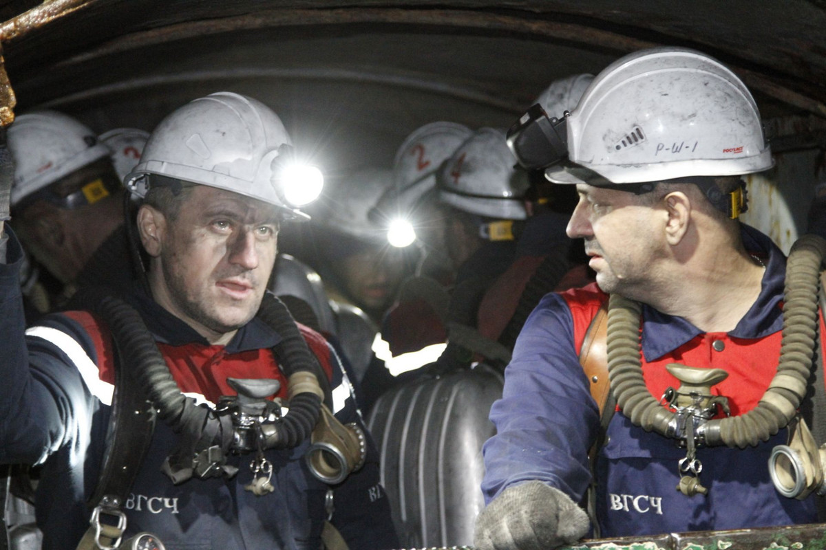 Thợ mỏ sơ tán khỏi trong mỏ than Obukhovskaya.