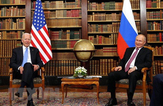 Tổng thống Mỹ Joe Biden và Tổng thống Nga Vladimir Putin tại Hội nghị thượng đỉnh ở Geneva ngày 16/6/2021. (Ảnh: Tân Hoa Xã).