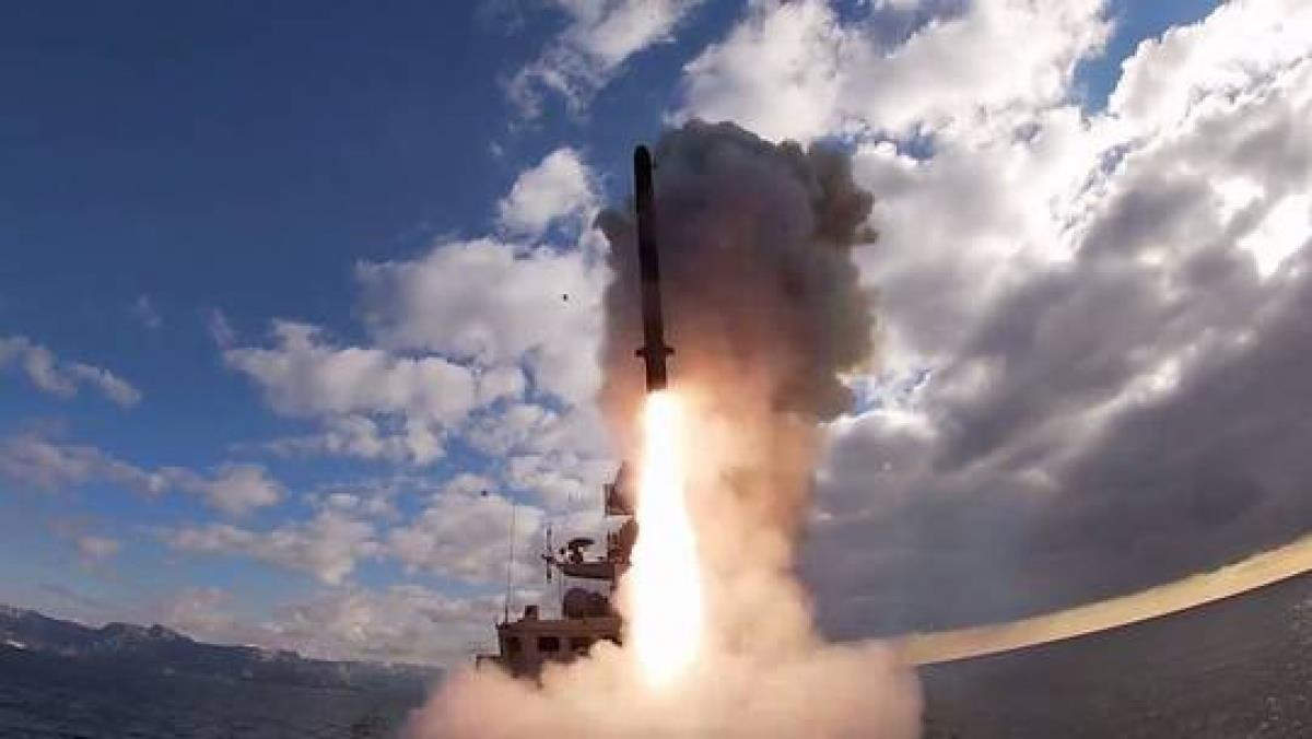 Một tàu chiến Nga phóng tên lửa Kalibr. (Ảnh: Bộ Quốc phòng Nga)