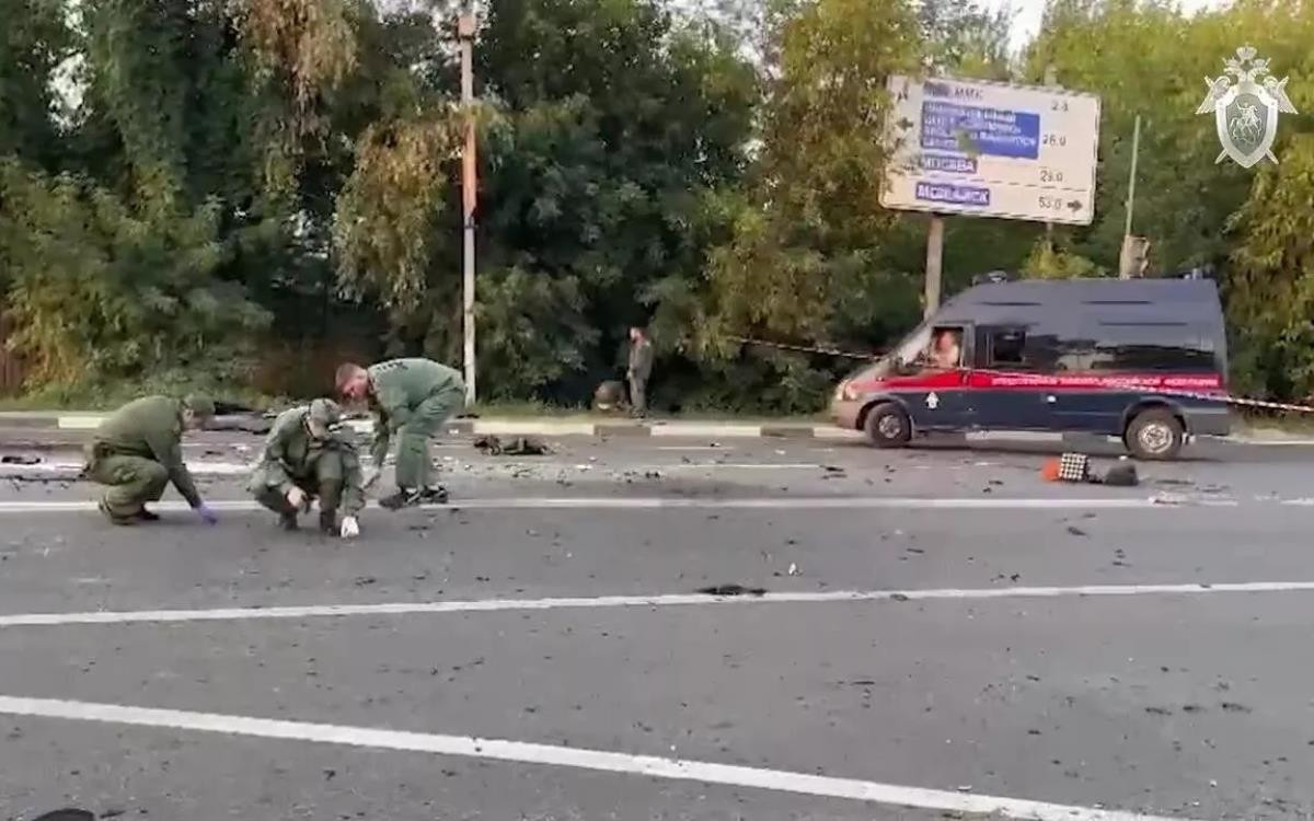 Khám nghiệm hiện trường vụ xe ô tô con gái triết gia Dugin của Nga phát nổ. (Ảnh: Ủy ban Điều tra Nga)