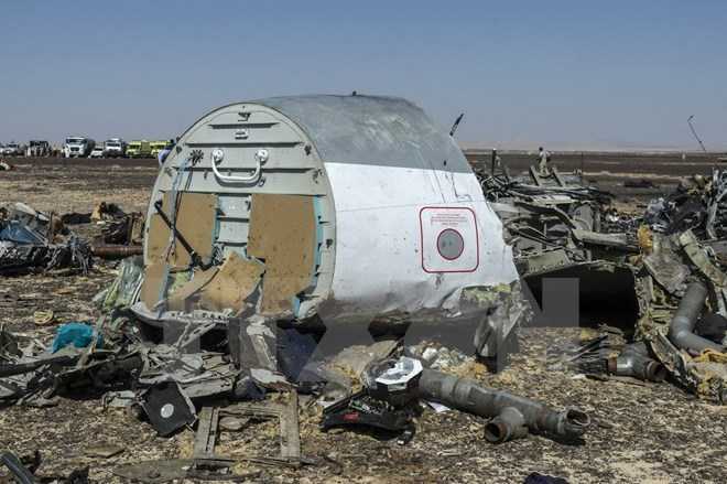 | Mảnh vỡ máy bay Nga A321 tại hiện trường ở Wadi al-Zolomat, bán đảo Sinai, Ai Cập ngày 1/11 |