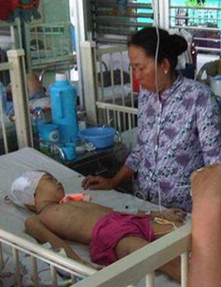 Trước đó, bé Vân nhập viện trong trình trạng rất nguy kịch, sức khỏe yếu dần, hộp sọ bị nứt quá lớn (dài 7 cm, rộng 2 cm). Sau khi tiếp nhân bệnh nhân, nhận thấy bé Vân bị chấn thương nghiêm trọng, các bác sĩ lập tức đưa ra quyết định mổ để cứu sống bé Vân. Hiện bé Vân đã dần dần bình phục.