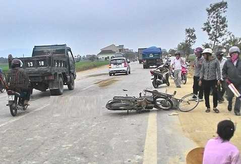 Vụ va chạm chiến ông S bị ngã xuống đường, cùng lúc đó xe tải chở vật liệu BKS 37C-144.48 đi đến, cán chết ông S.