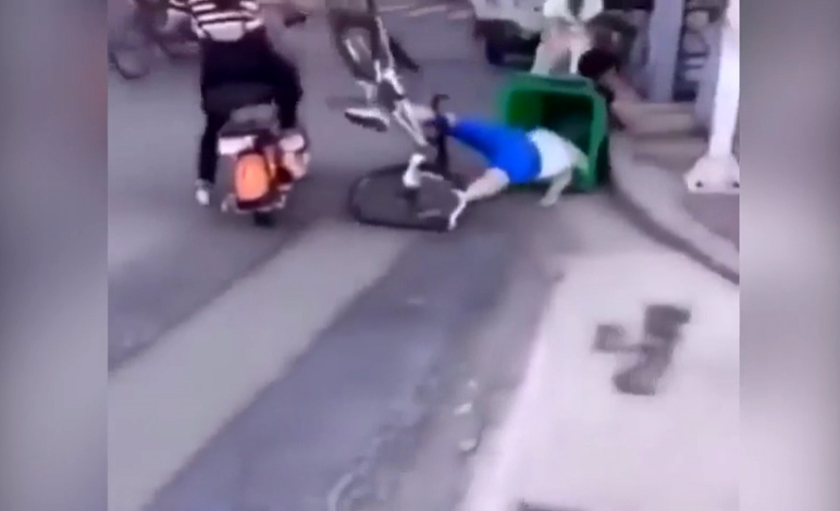 Ngã sấp mặt vì mải ngắm gái xinh