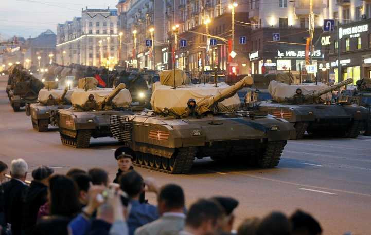 Các phương tiện quân sự và binh sỹ của quân đội Nga đang ngày đêm luyện tập cho lễ duyệt binh sẽ diễn ra vào dịp kỷ niệm ngày Chiến thắng 9/5 sắp tới.