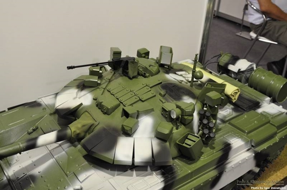 Mô hình mô phỏng xe tăng với tổ hợp KAZ Arena-M được giới thiệu tại triển lãm. Ảnh: Gurkhan.blogspot.com
