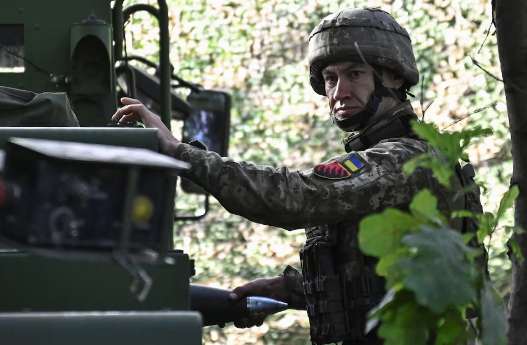 Ukraine cầm quả đạn pháo tự hành Caesar trước khi bắn về phía quân đội Nga bên ngoài thị trấn Pokrovsk. (Ảnh: Reuters)