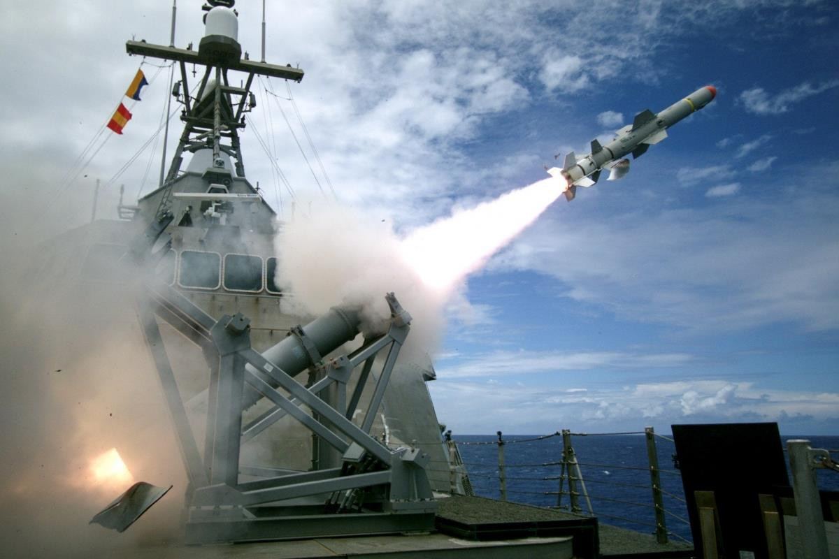 Tên lửa Harpoon được phóng từ một tàu chiến của hải quân Mỹ. (Ảnh: Hải quân Mỹ)