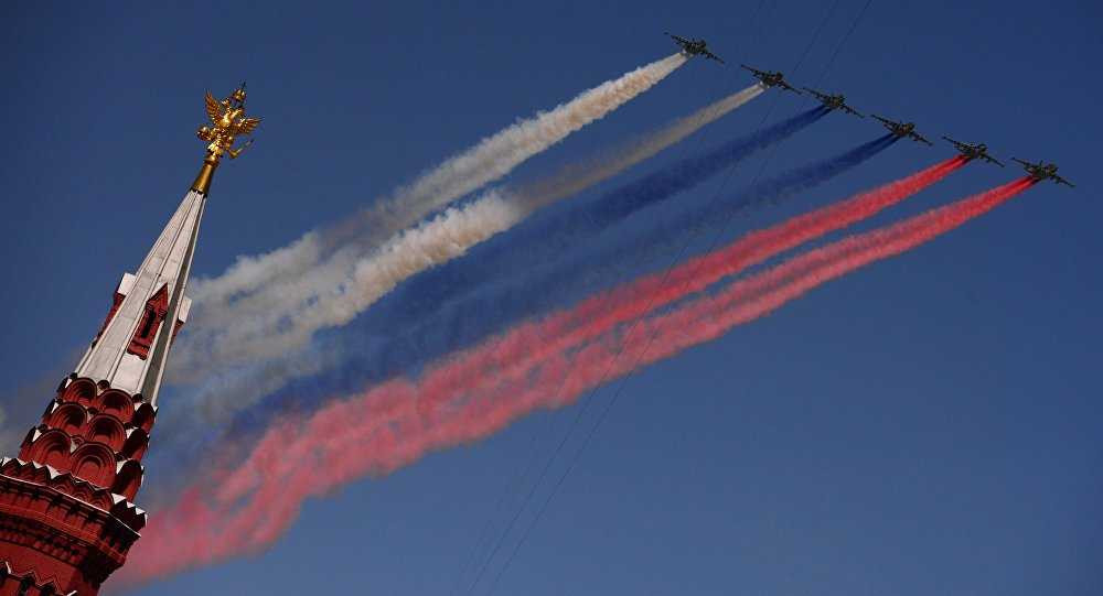 Kết thúc buổi tổng diễn tập là các đội bay của không quân Nga.