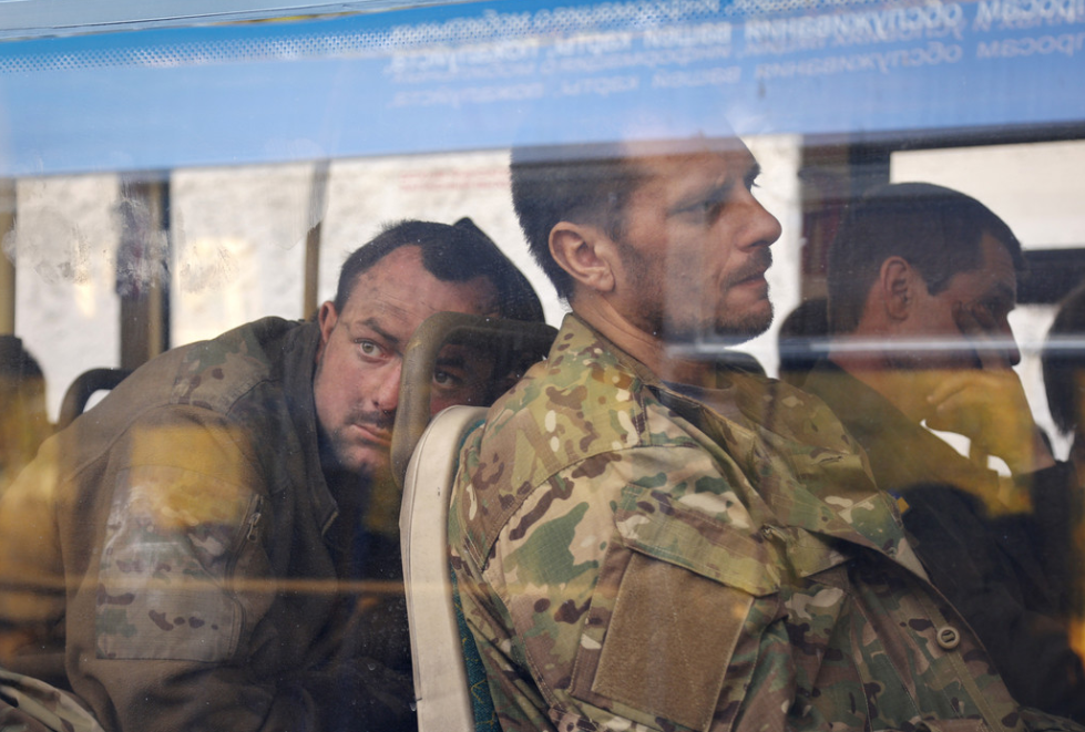 Các binh sĩ Ukraine được sơ tán khỏi nhà máy thép Azovstal sau khi lực lượng Nga kiểm soát thành phố ở Mariupol. (Ảnh: AP)