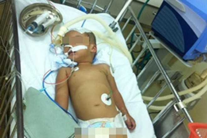 Bé T. (31 tháng tuổi, ở Thái Nguyên) đang được cấp cứu tại khoa Hồi sức ngoại, bệnh viện Nhi Trung ương vì chấn thương sọ não sau khi ngã từ ban công cao 5m.