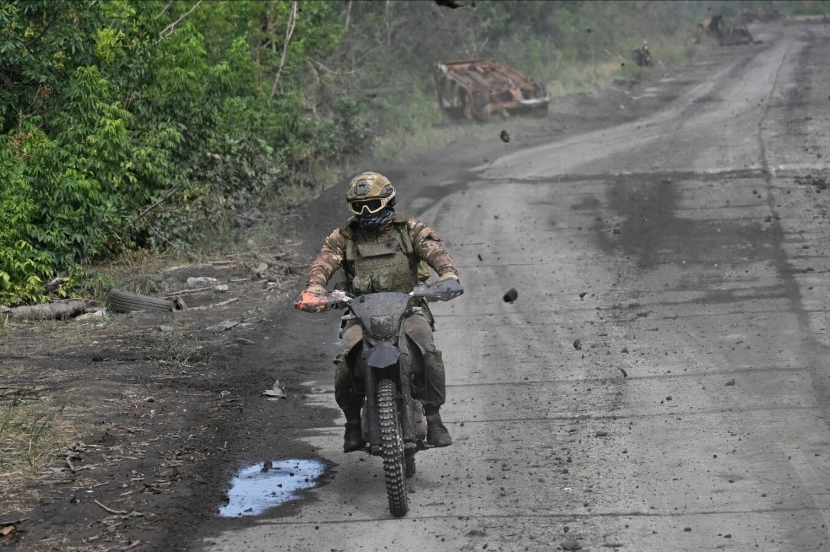 Binh sĩ Nga lái xe máy trong vùng chiến sự tại Ukraine. (Ảnh: Sputnik)