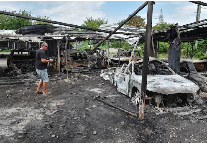 Hiện trường cuộc tấn công bằng máy bay không người lái của Nga vào Dnipro, Ukraine ngày 26/7. (Ảnh: Reuters)