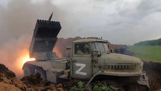 Các binh sĩ của lực lượng ủng hộ Nga khai hỏa hệ thống tên lửa phóng loạt BM-21 Grad ở Ukraine. (Ảnh: Bộ Quốc phòng Nga/Sputnik)