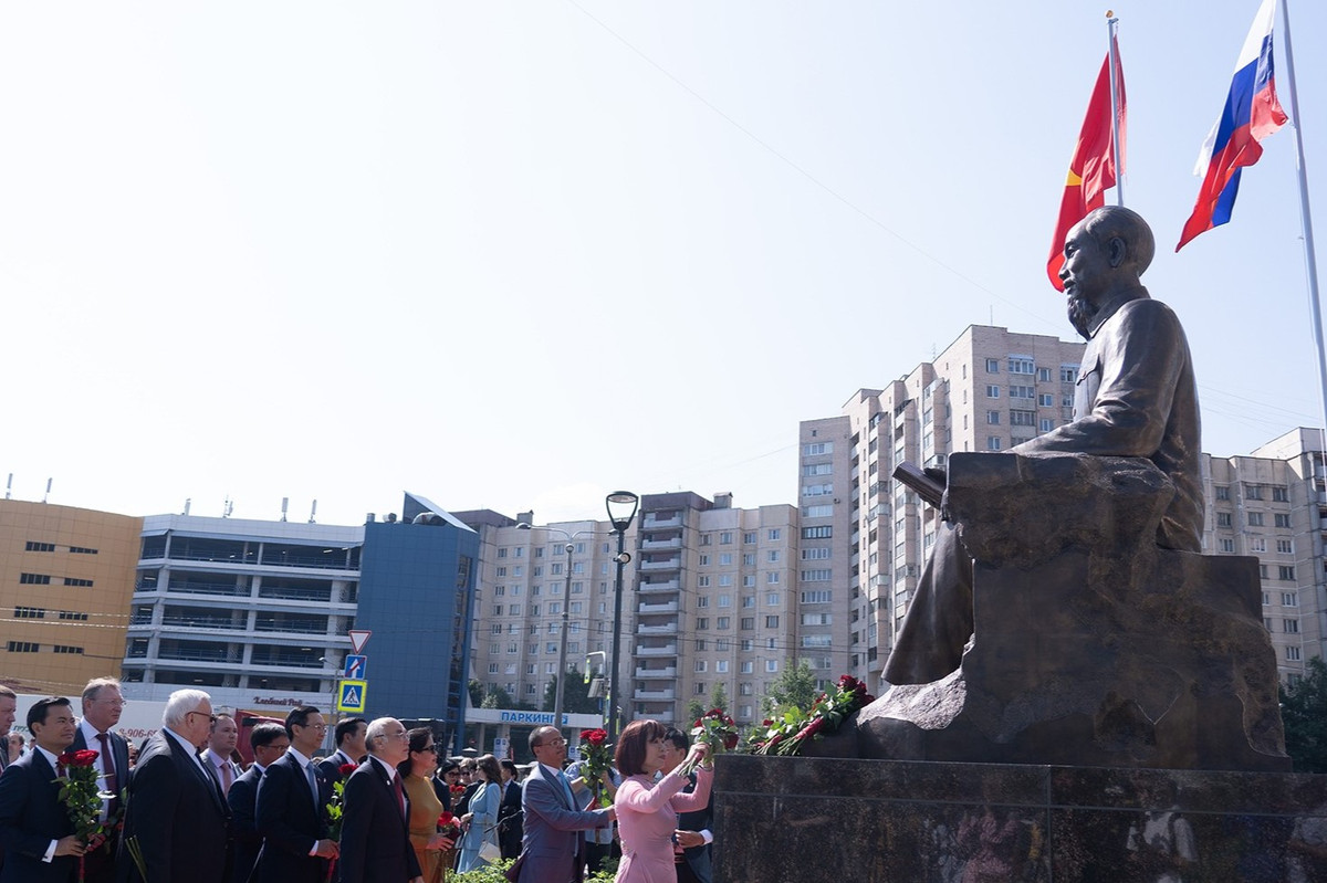 Tôi muốn nhấn mạnh rằng, năm ngoái, tượng đài tưởng niệm Người - Chủ tịch nước đầu tiên của Việt Nam đã được khánh thành ở St. Petersburg nhân dịp kỷ niệm 100 năm Hồ Chí Minh đến thăm “thủ đô phương Bắc” của nước Nga.