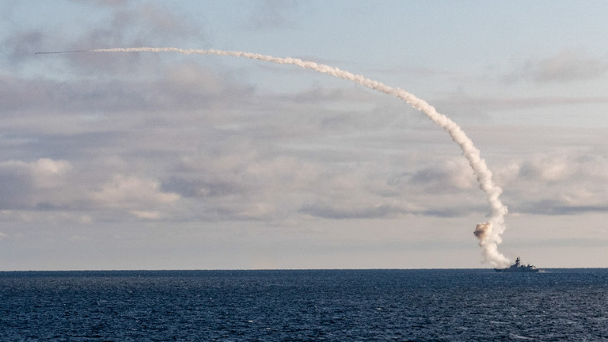 Nga phóng tên lửa hành trình Kalibr từ tàu chiến trong một cuộc tập trận. (Ảnh: Bộ Quốc phòng Nga)