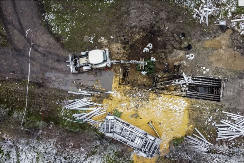Hiện trường vụ tên lửa rơi ở Ba Lan. (Ảnh: AFP)