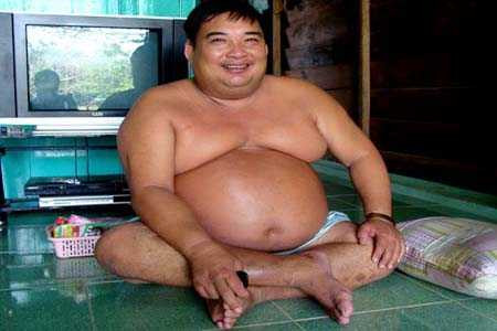 Có khách, người đàn ông khổng lồ này chống tay khó nhọc ngồi dậy. Dù đã được đám xe ôm kể trước, song tôi vẫn không khỏi ngạc nhiên. Ngồi đối diện tôi là một người đàn ông khổng lồ, to hơn cả võ sĩ sumo ở Nhật Bản. Ông có cái bụng tròn, căng núc ních thịt, khuôn mặt phúc hậu, đầy đặn, trông chả khác gì tượng Phật Tổ Như Lai, hay Phật Di Lặc trong những ngôi chùa.