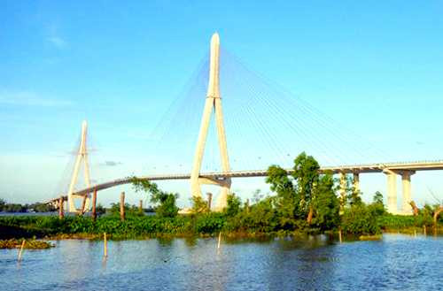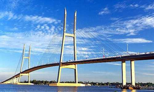 | Cầu Mỹ Thuận nối 2 tỉnh Tiền Giang và Vĩnh Long là cây cầu dây văng đầu tiên của Việt Nam. |
