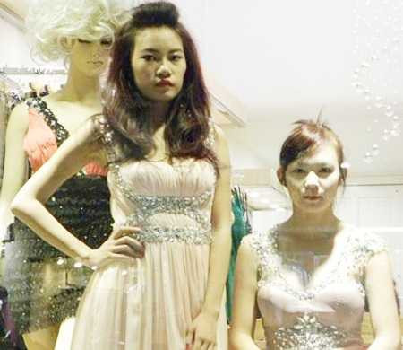 Theo Phụ nữ Đời sống, hai cô gái trẻ đang đứng ở vị trí ma-nơ-canh trong cửa hàng hôm nay có những cái tên rất đẹp: Hiền Thanh và Kiều My. Cả hai hiện đang là sinh viên của trường Cao đẳng du lịch Hà Nội.