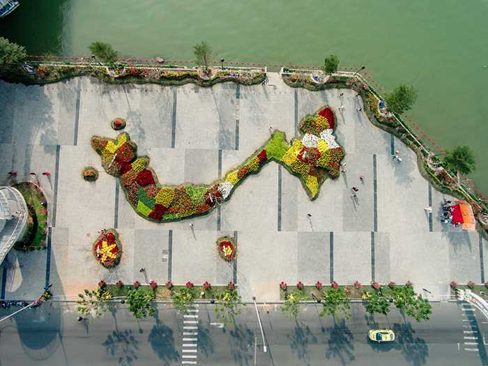| Đường hoa hình bản đồ Việt Nam nhìn từ cầu Rồng |
