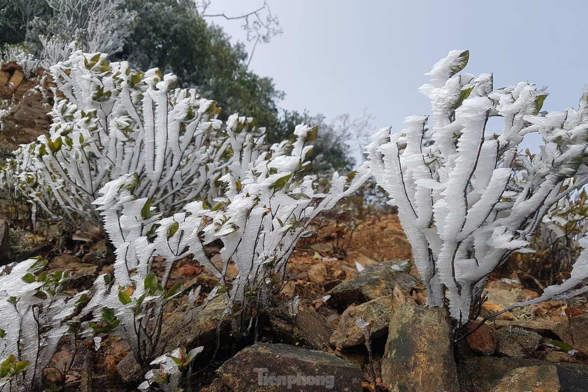 Băng tuyết phủ trắng cả rừng cây gần Trạm Biên phòng Buộc Mú, Đồn Biên phòng Na Ngoi (Bộ đội Biên phòng Nghệ An).