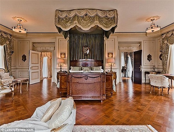 Với tổng diện tích lên tới 24.000 m2, gồm 6 nhà tắm, 1 phòng ăn rộng đủ cho gần 20 người, một phòng chơi game, một phòng tập gym, một thư viện lớn, một bể bơi và sân bay.