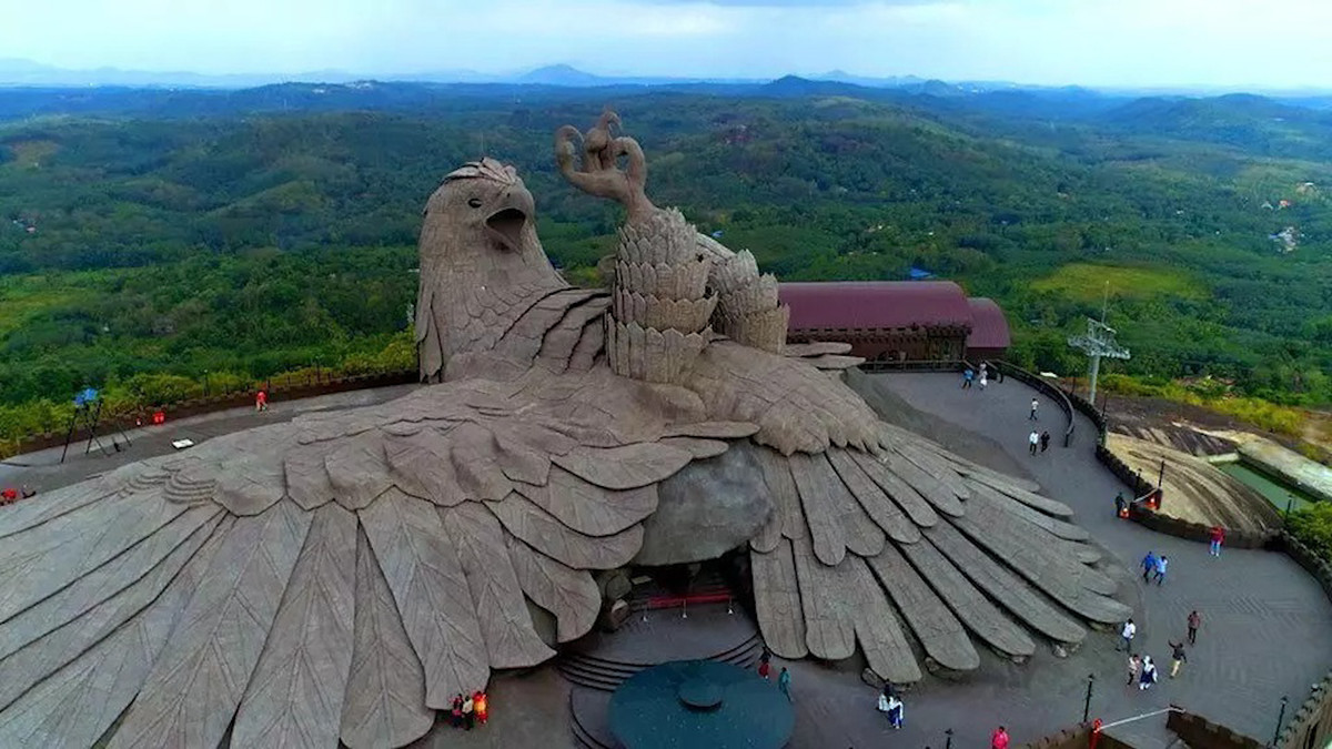 Tác phẩm điêu khắc khổng lồ có tên Jatayu này đại diện cho loài chim săn mồi thần thánh trong sử thi Ramayana (Ấn Độ) với tổng chiều dài 60m.