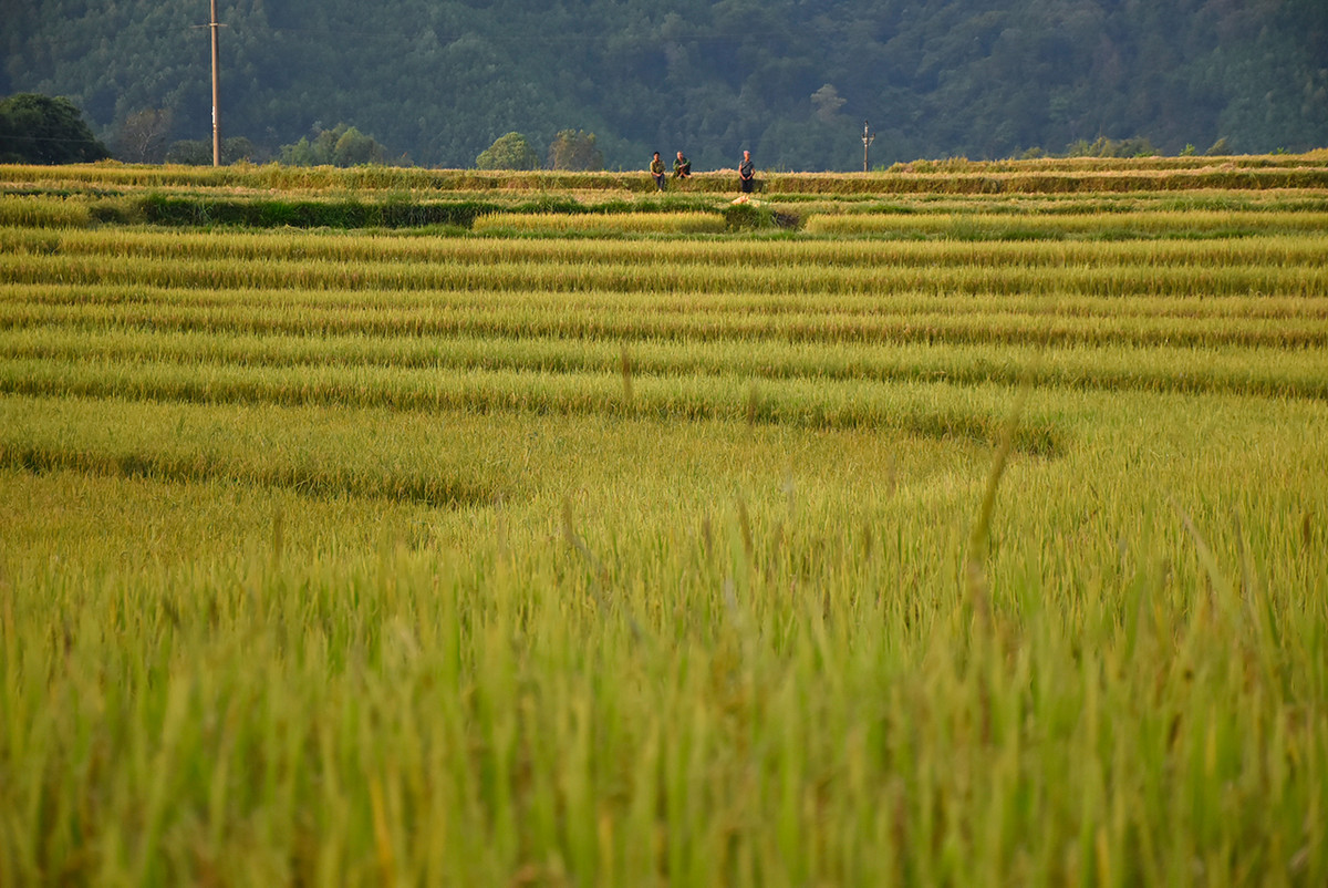 Nâng bao thóc lên để chuyên chở về nhà ở bản Khe O, anh A Nhì, người dân tộc Dao Thanh Y cho biết, hàng năm, cứ vào dịp này, rất đông người dân ở khắp nơi trên cả nước về bản của anh để chụp ảnh trên các ruộng bậc thang. Gia đình anh cấy lúa sớm nên đang lúc gặt rộ. Với những gia đình cấy lúa dài ngày hơn, phải đợi một thời gian nữa mới tới mùa.