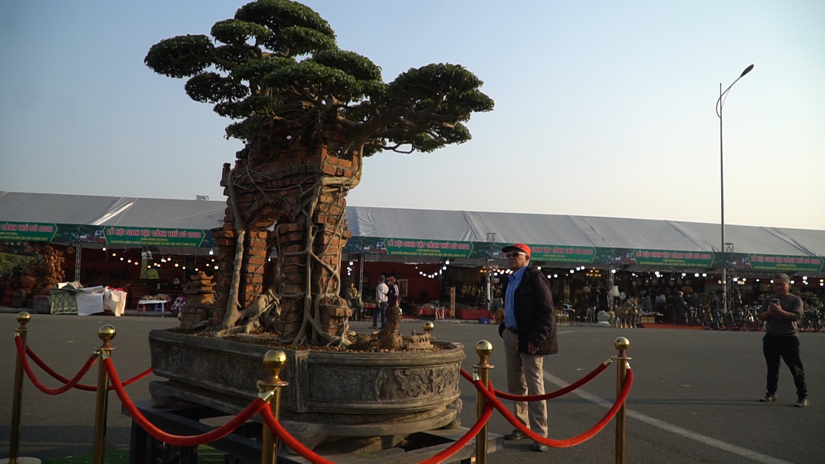 Cây sanh "hồn quê" của ông Lại Quang Hòa (Hưng Yên) có bộ rễ ôm trọn cổng làng, thu hút người dân tại Festival sản phẩm nông nghiệp và làng nghề Hà Nội.