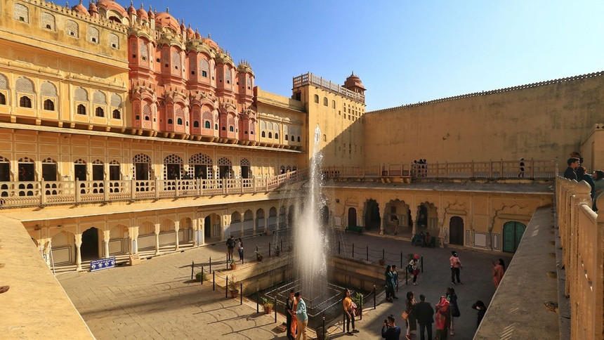 Cách thủ đô Delhi (Ấn Độ) 300 km, cung điện Hawa Mahal mang kiến trúc hình kim tự tháp năm tầng với gần 1.000 cửa sổ nhỏ chi chít.