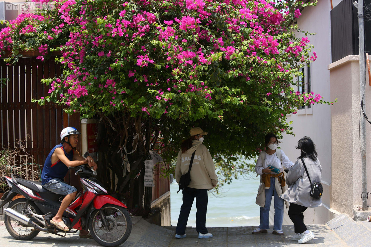 Một dàn hoa giấy được trồng ngay cạnh hẻm 107 Trần Phú. Con hẻm này rất nổi tiếng khi hướng thắng ra biển và được nhiều bạn trẻ chọn làm nơi check-in khi tới thành phố biển này.