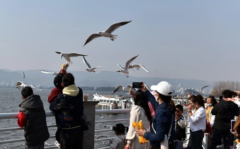 Ngày 12/11/1985, hàng ngàn con hải âu mỏ đỏ lần đầu tiên đến Côn Minh. Theo các chuyên gia, hải âu đỏ di cư để tránh đông xuất phát từ lưu vực hồ Kyrgyzstan, khu vực phía nam hồ Baikal của Nga và lưu vực hồ Bosten ở Tân Cương.