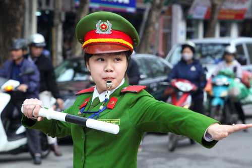 Trong những ngày giáp Tết, chúng tôi vô tình bắt gặp hot girl Học viện Cảnh sát Nhân dân Công Hồng Nhung đang chăm chú điều tiết giao thông.