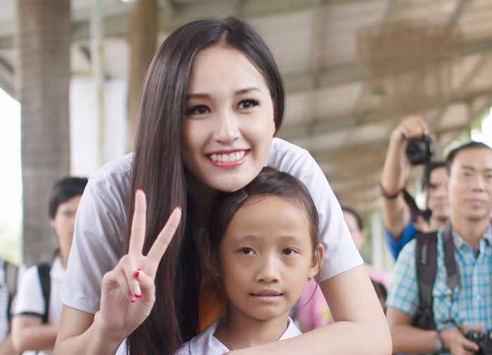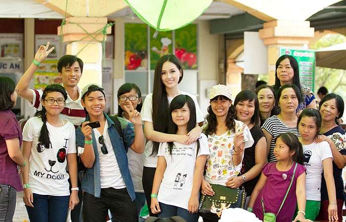 Hoa hậu chụp hình chung với các em nhỏ