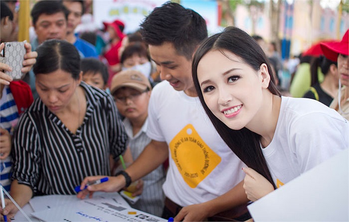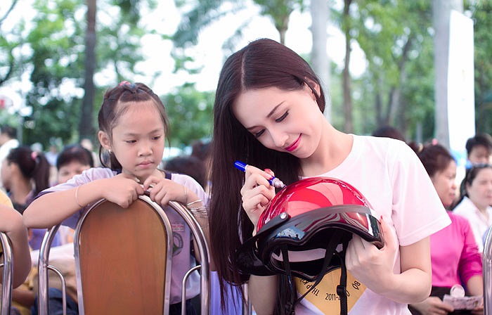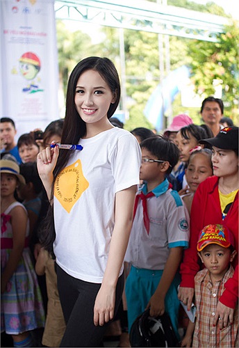 (VTC News) - Những hình ảnh cực kỳ dễ thương của Hoa hậu Mai Phương Thúy trong chương trình Ngày hội an toàn giao thông cho thiếu nhi TP.HCM. (Ảnh Benny Phan)