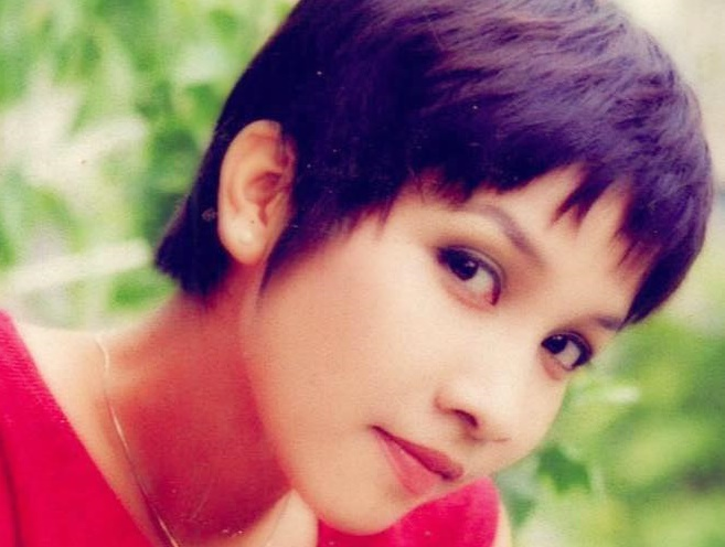 Hình ảnh của ca sĩ Mỹ Linh trong MV "Tóc ngắn". Thời điểm này, nữ ca sĩ vừa sinh con trai Trương Anh Duy.
