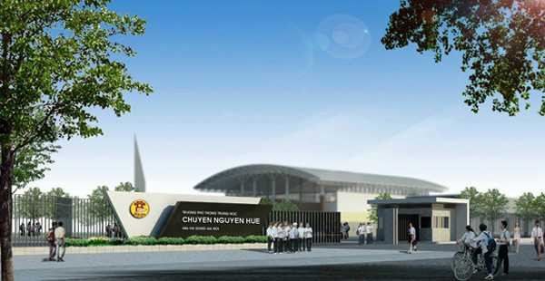 Kiến trúc hiện đại cùng một không gian nhiều cây xanh là điểm nhấn lớn nhất của mái trường THPT chuyên Nguyễn Huệ mới