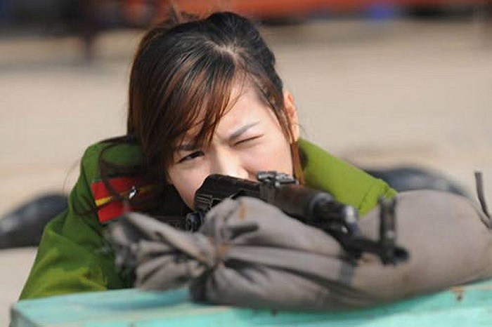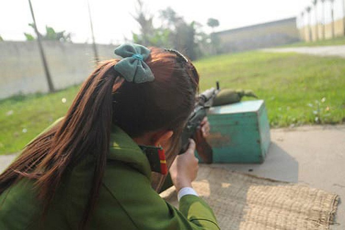 Trong buổi luyện súng thường ngày, vẻ tay yếu chân mềm của các “bóng hồng” học viên cảnh sát biến mất. (Theo Dân Việt)