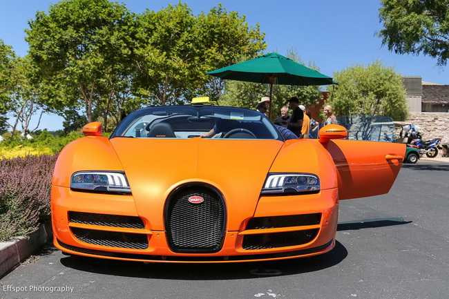 Ngoài chiếc Veyron Vitesse màu mây xanh có giá tới 2,5 triệu USD, Monterey 2012 còn có sự xuất hiện của hai chiếc Veyron Vitesse màu vàng xanh và màu cam cực độc.