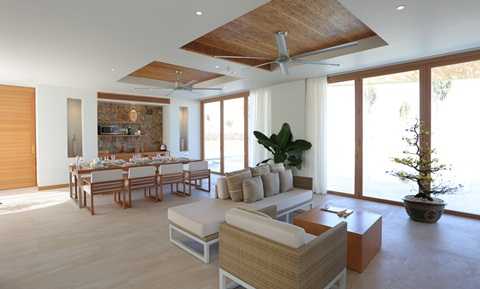 Bên trong mỗi căn biệt thự là nội thất với phong cách trẻ trung, trang nhã, đơn giản nhưng tinh tế từ hình khối đến màu sắc. Tất cả nhằm tạo cho du khách cảm giác hoàn toàn thư thái. Mọi chi tiết rườm rà hay những gam màu mạnh đều bị loại bỏ để du khách dành trọn các giác quan của mình tận hưởng khung cảnh thơ mộng xung quanh.