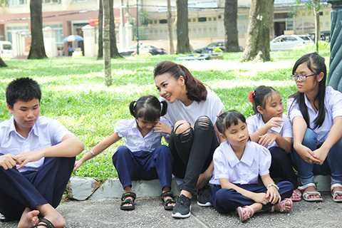 | Với phong cách thời trang tối giản, Thanh Hằng đã “thoát” khỏi hình ảnh một vị Host quyền lực của một trong những chương trình truyền hình thực tế tìm kiếm người mẫu hàng đầu Việt Nam. Cô vô tư, hồn nhiên chơi đùa cùng những trẻ em có mặt tại đây. |