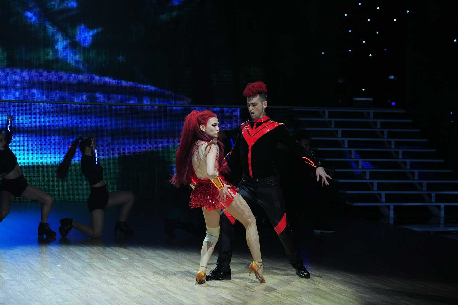 Với tổng số điểm thấp nhất sau các liveshow, hai cặp đôi Hoàng Mập - Gabi và Hữu Long - Elena bắt buộc phải loại nhau trong màn Dance-off.