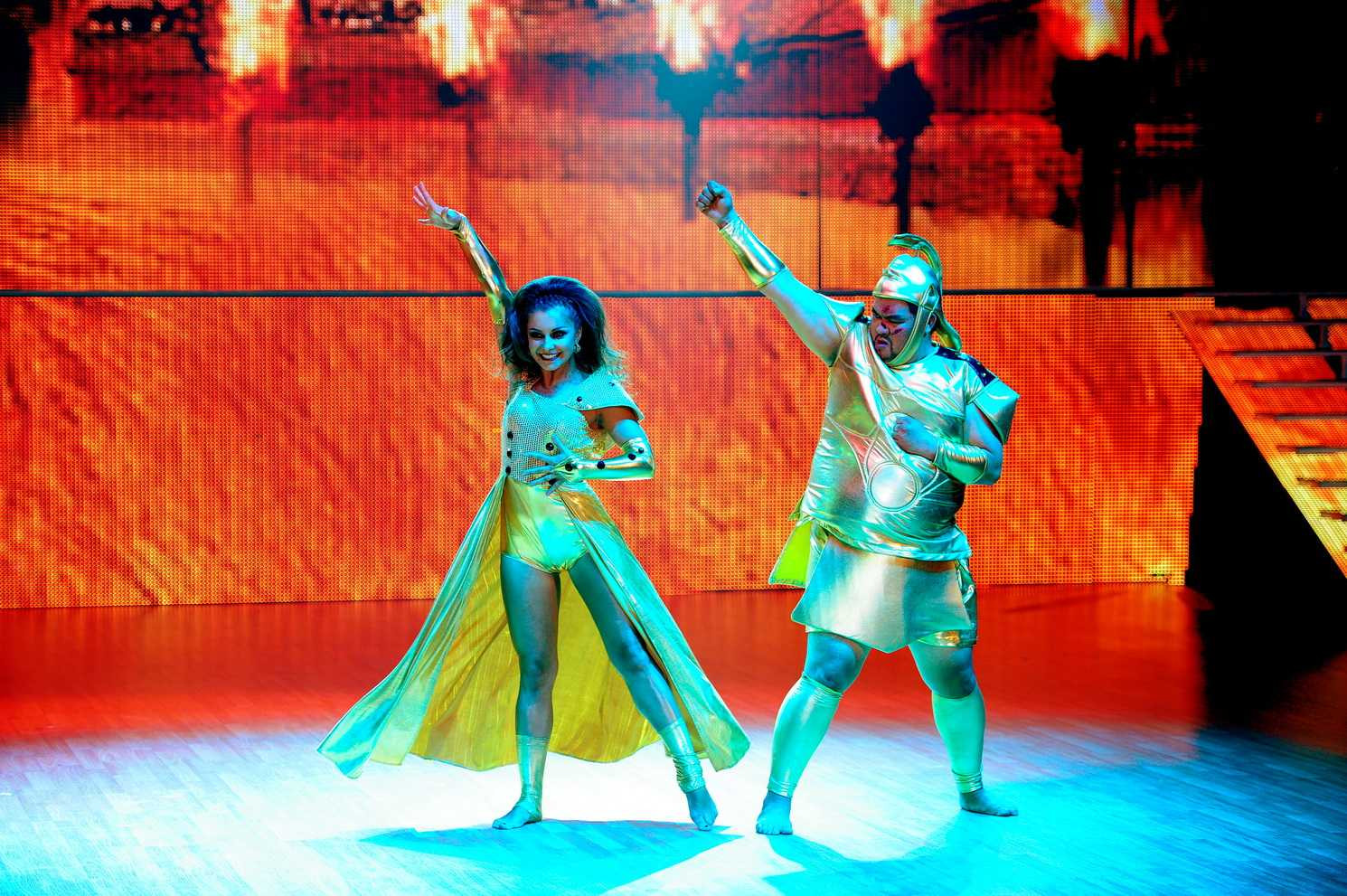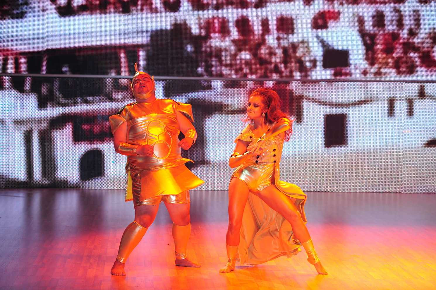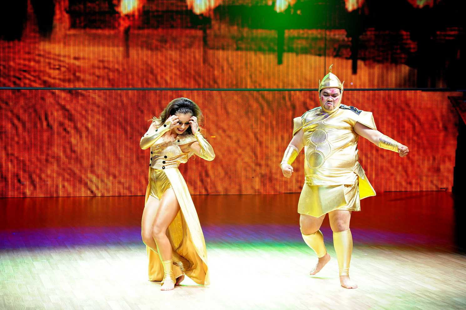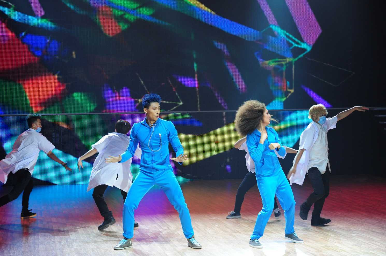 Hóa thân thành những chiến binh vũ trụ, cặp đôi này đã có màn kết hợp khá ưng ý với vũ đoàn, tạo nên không khí rất sôi động.
