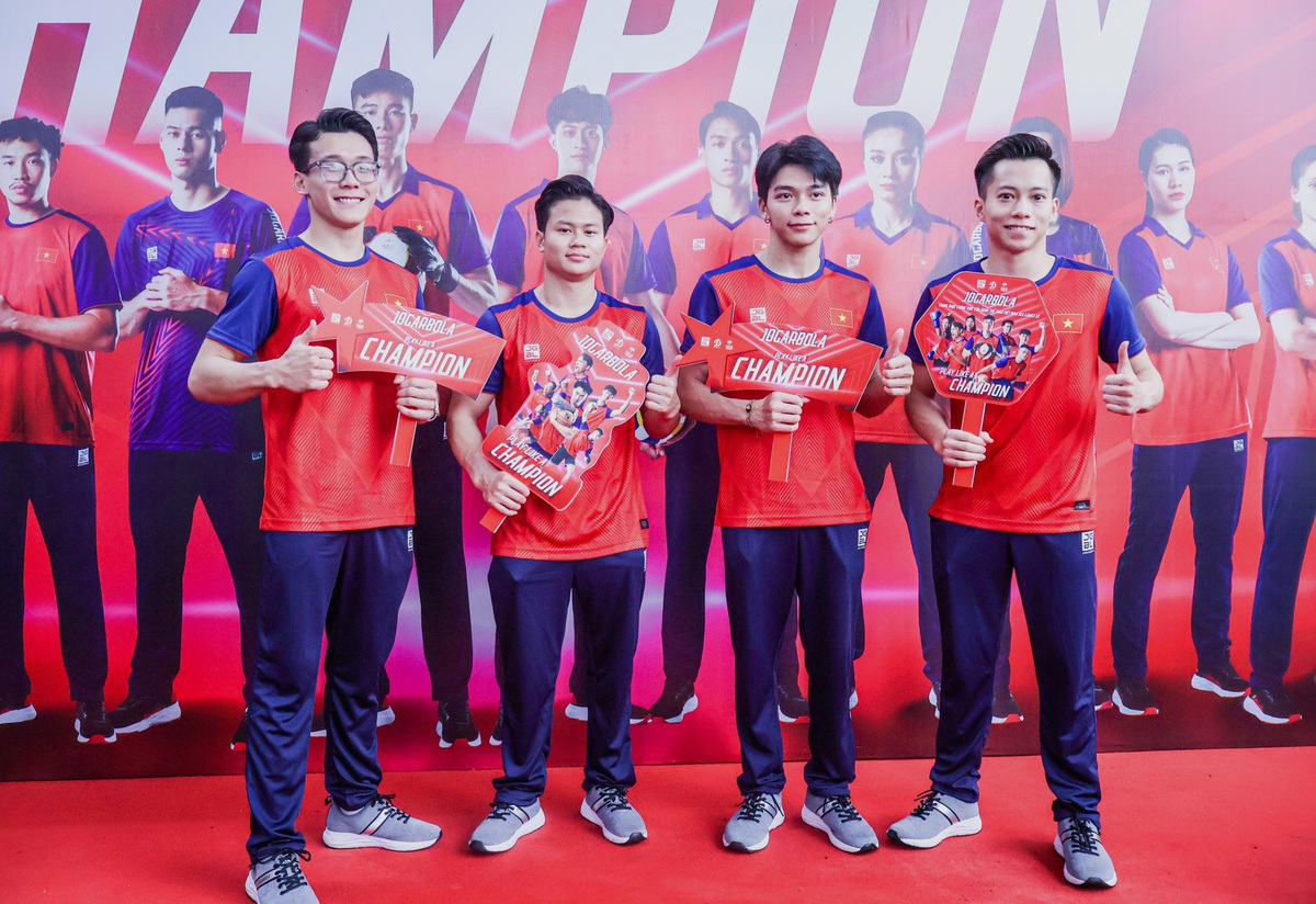 Đội tuyển thể dục dụng cụ tại lễ ra mắt bộ sưu tập. Ảnh: Quý Lượng