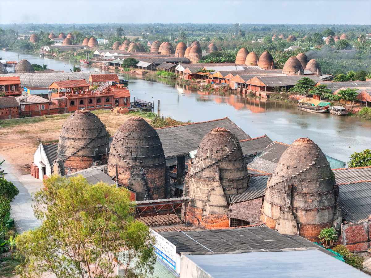 Làng lò gạch Mang Thít trong nắng sớm.
