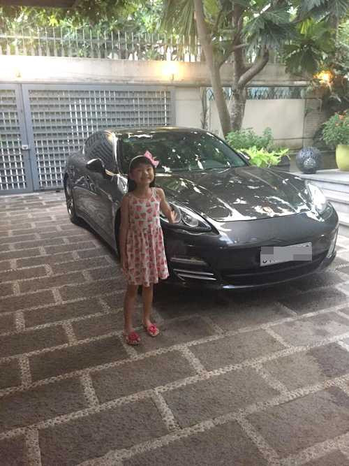 Diễn viên 'Quyên' khoe hình ảnh bé Bảo Tiên thích thú khám phá xế hộp mà anh mới mua.