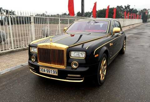 | Rolls-Royce Phantom mạ vàng độc nhất Việt Nam với biển số đối xứng tại Hà Nội. Ảnh: Trần Văn Thắng. |