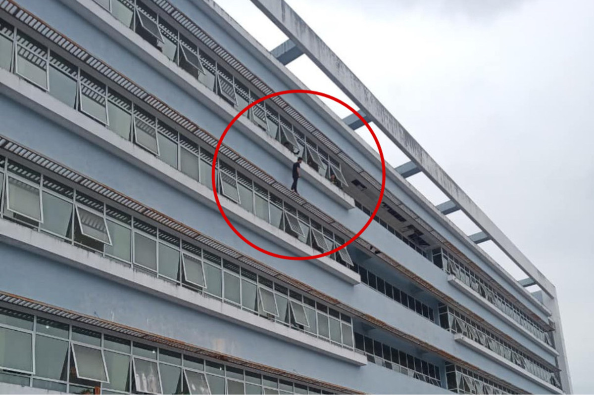 Thời điểm này, bệnh nhân P.V.M. (SN 1998, đang điều trị tại Khoa Tâm thần kinh) bất ngờ trèo ra khu vực ô thoáng tầng 7 khu nhà B, có ý định nhảy xuống.